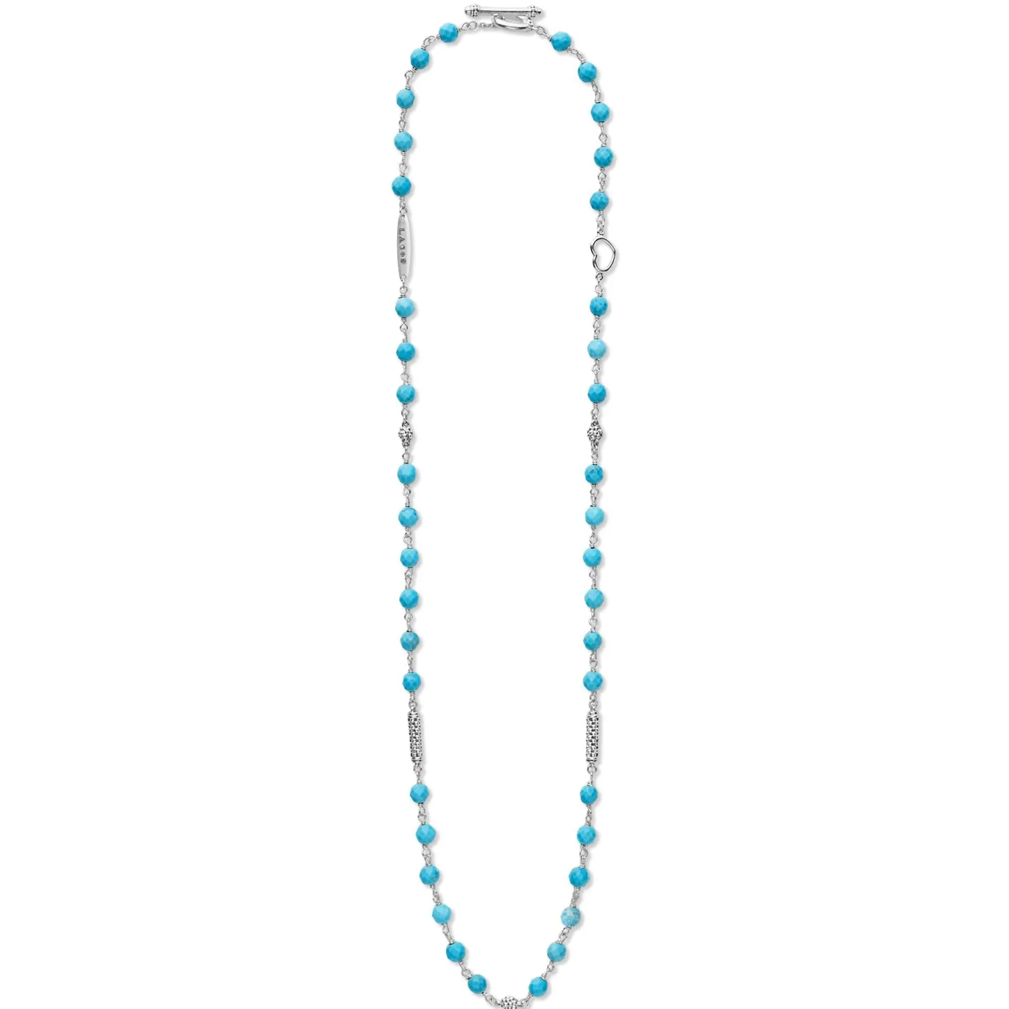 Turquoise And Sterling Silver Caviar Beaded Necklace Finished With A Toggle Clasp. Necklace Adjustable 16 To 18 Inches.