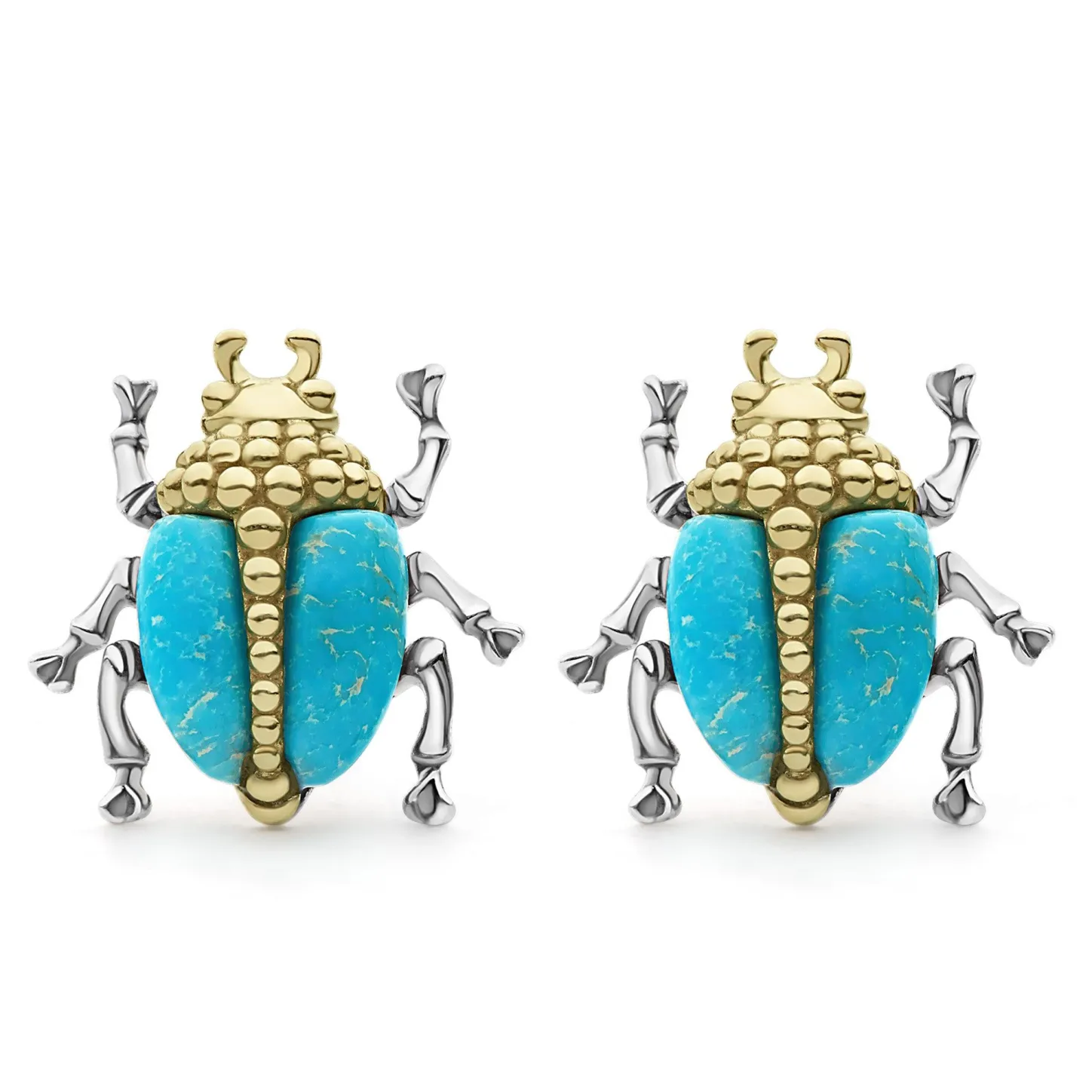 A Lagos Exclusive. Turquoise With 18K Gold And Sterling Silver Accents Forming These Beetle Stud Earrings.