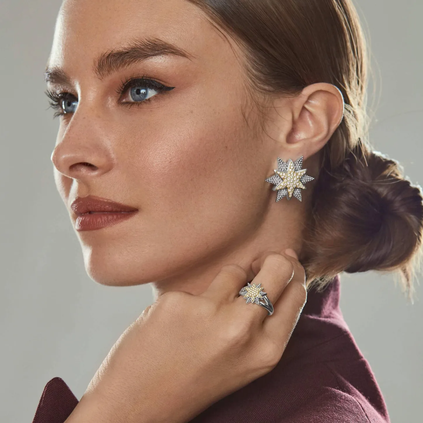 Pavé Diamonds And 18K Gold In A Star Motif Form This Ring. Lagos Diamonds Are The Highest Quality Natural Stones.