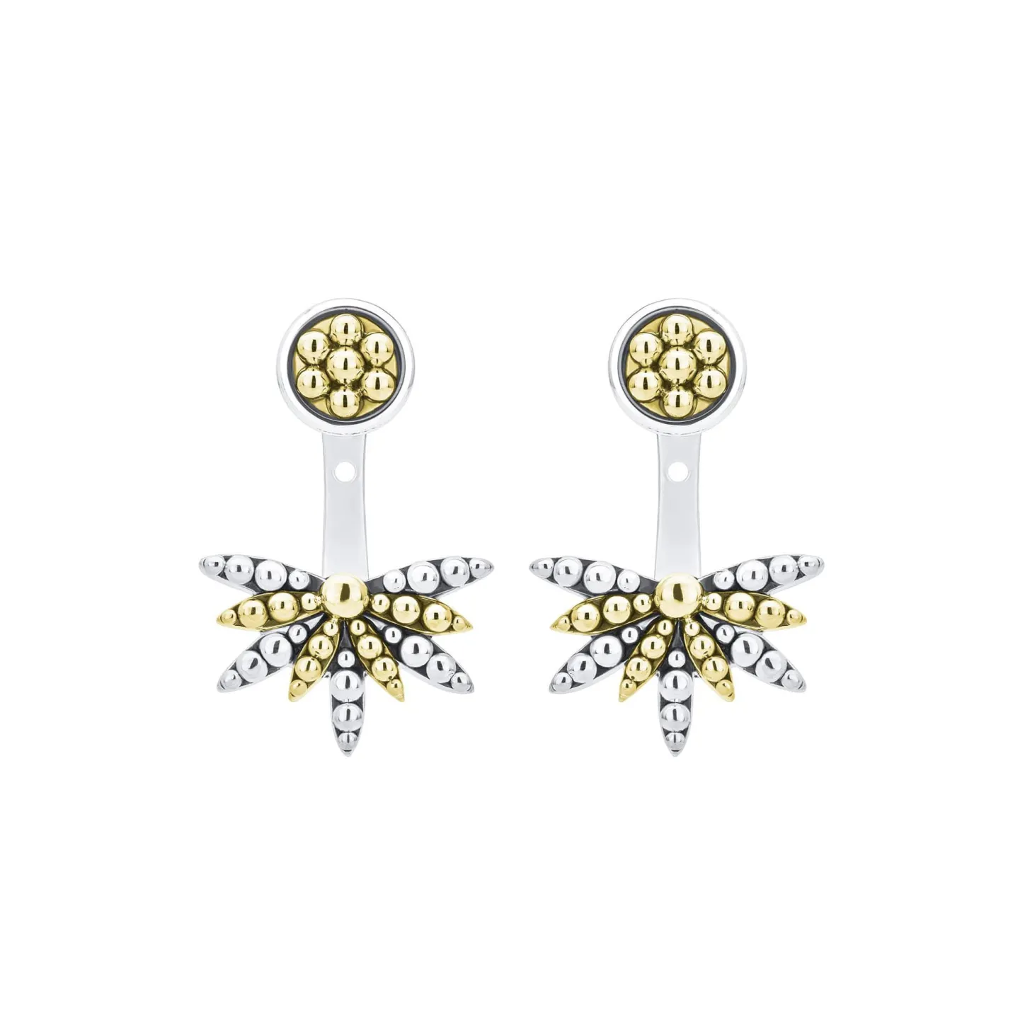 Detailed 18K Gold Caviar Front Studs Pair With Sterling Silver And 18K Gold Earring Jackets On These Chic And Versatile Earrings.
