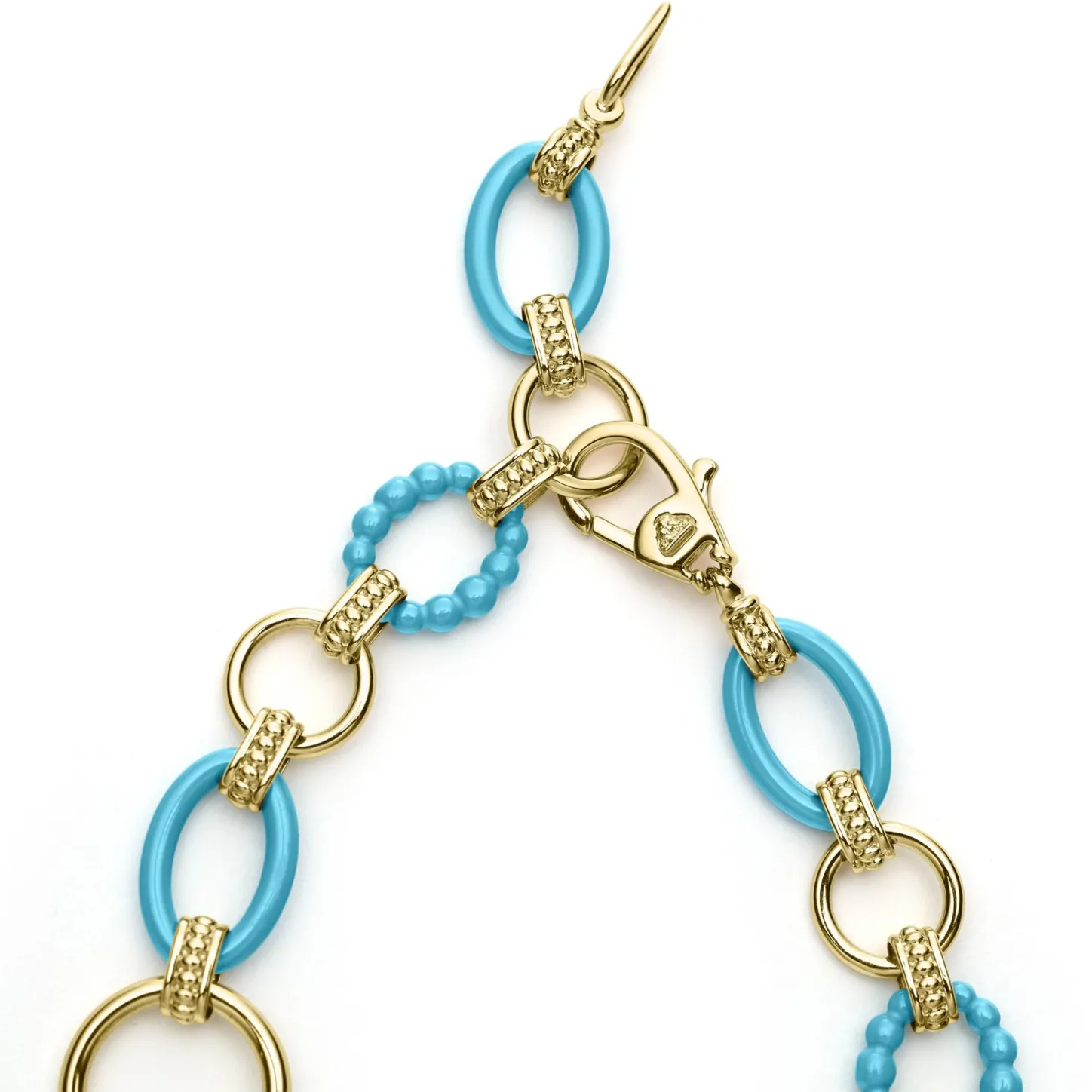 A Classic Bracelet With 18K Gold And Blue Ceramic Round, Oval And Beaded Links.
