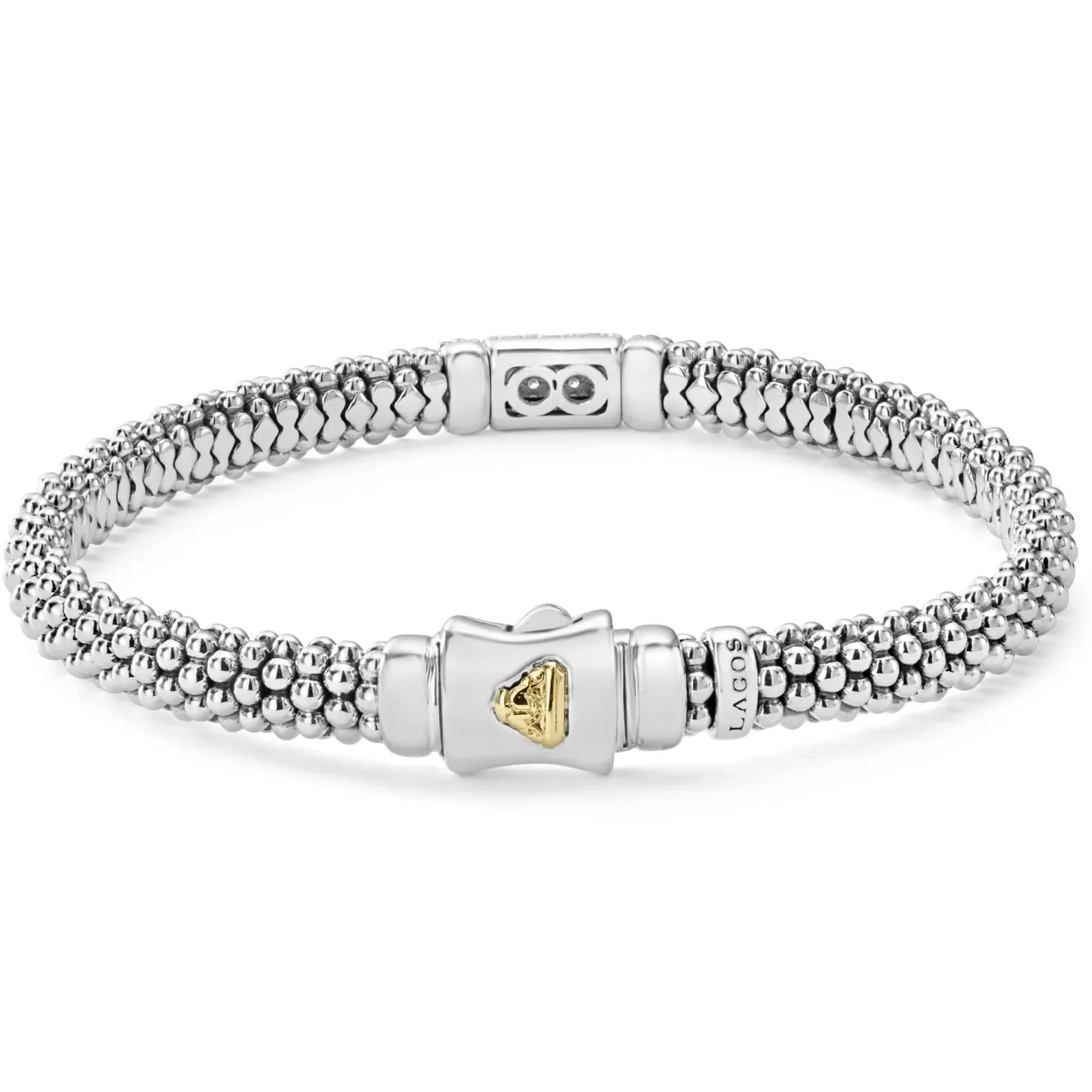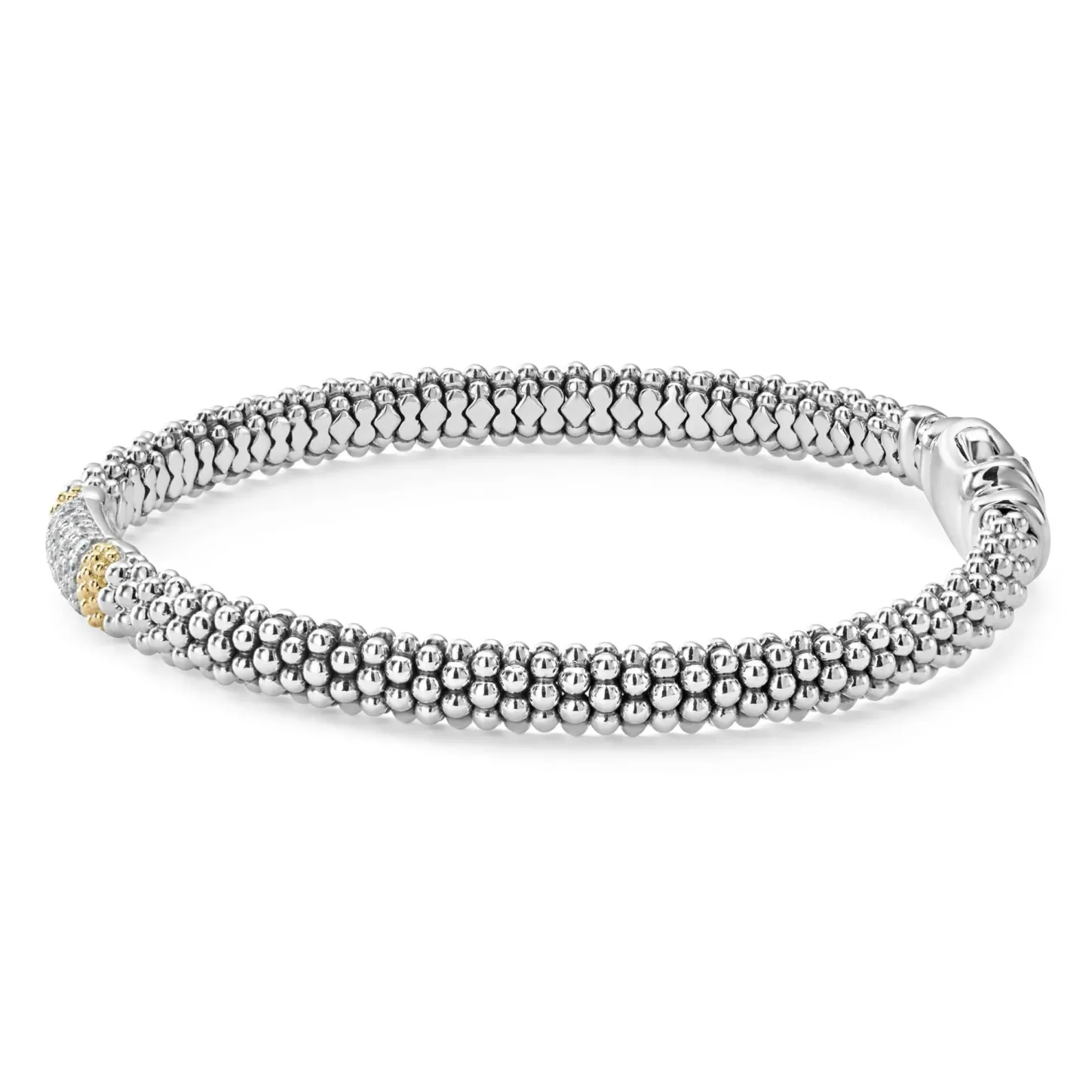 Pavé Diamonds Highlighted By 18K Gold With Sterling Silver Caviar Beading. Lagos Diamonds Are The Highest Quality Natural Stones.