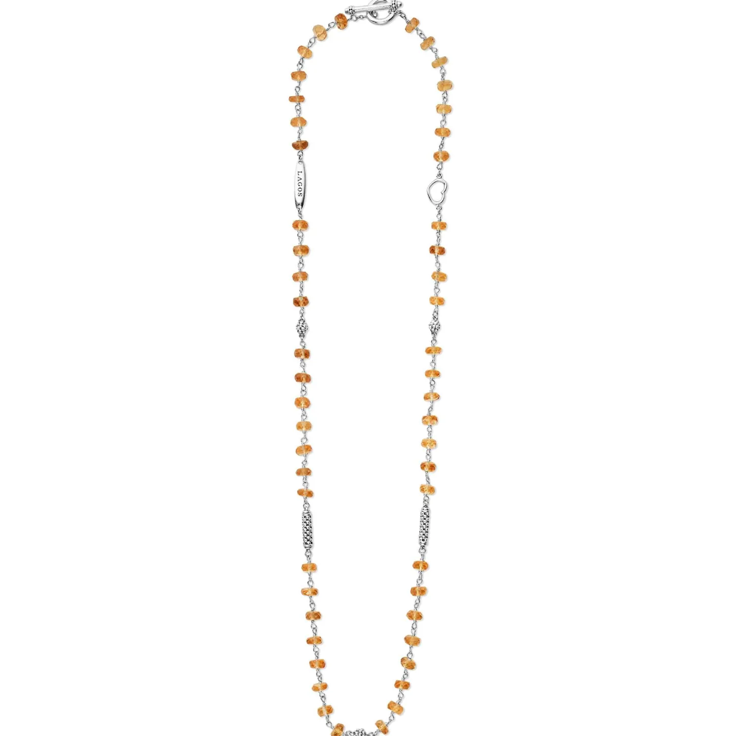 Citrine And Sterling Silver Caviar Beaded Necklace Finished With A Toggle Clasp. Necklace Adjustable 16 To 18 Inches.