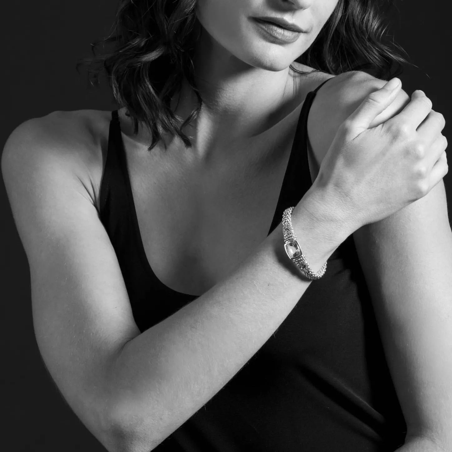 Citrine Bezel-Set Gemstone And Sterling Silver Caviar Beading With 18K Gold Detailing Forms This Bracelet.