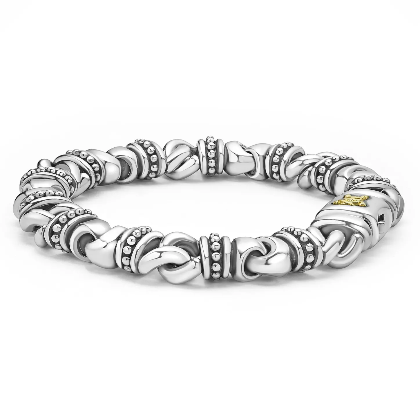 Sterling Silver Caviar Beading Forms This 13Mm Curb Link Bracelet Accented By An 18K Gold Krunch Clasp.