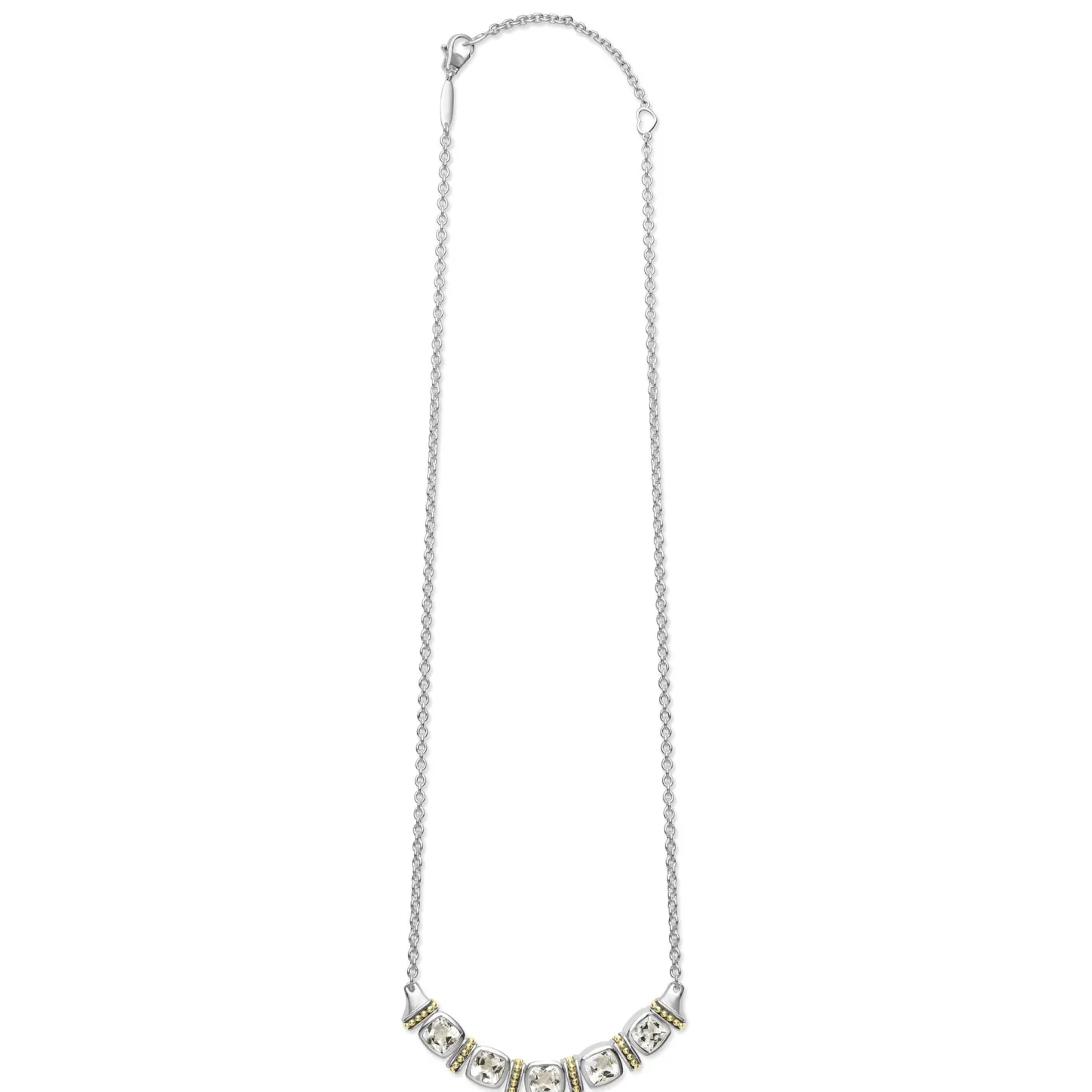 Five White Topaz Gemstones Accent This Necklace Surrounded By Sterling Silver And 18K Gold Caviar Beading.