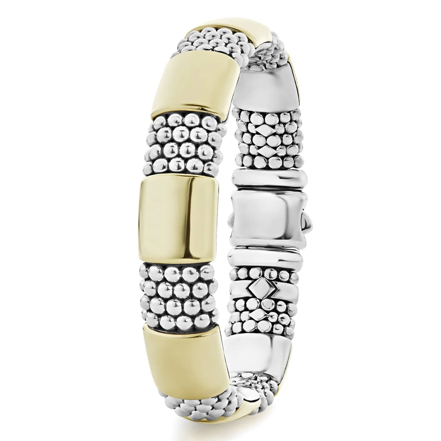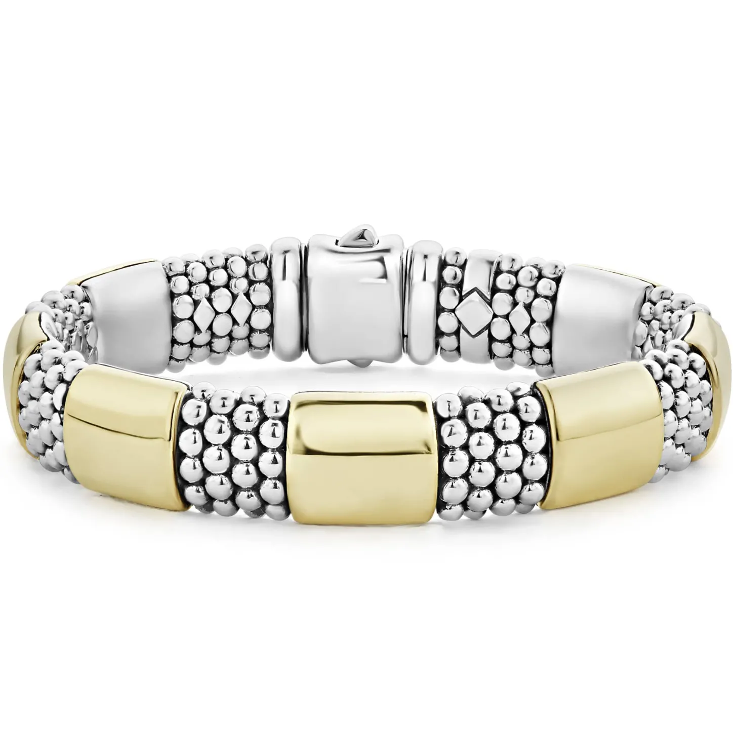 Seven Smooth Stations Of 18K Gold Accent Sterling Silver Caviar Beading To Form This Timeless Bracelet.
