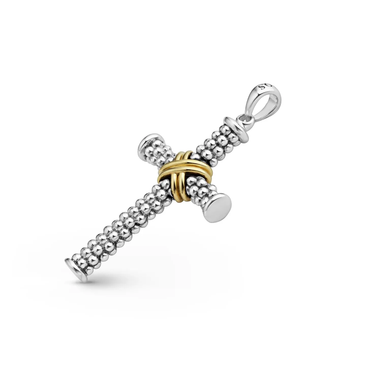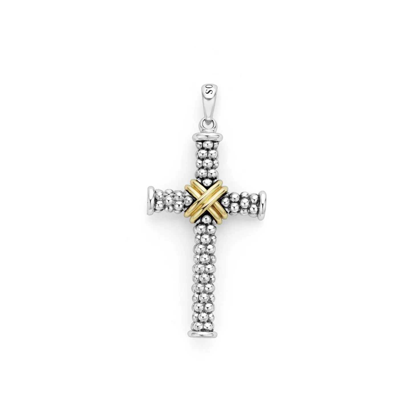 18K Gold And Sterling Silver Caviar Beading Form This Two Tone Cross Amulet.