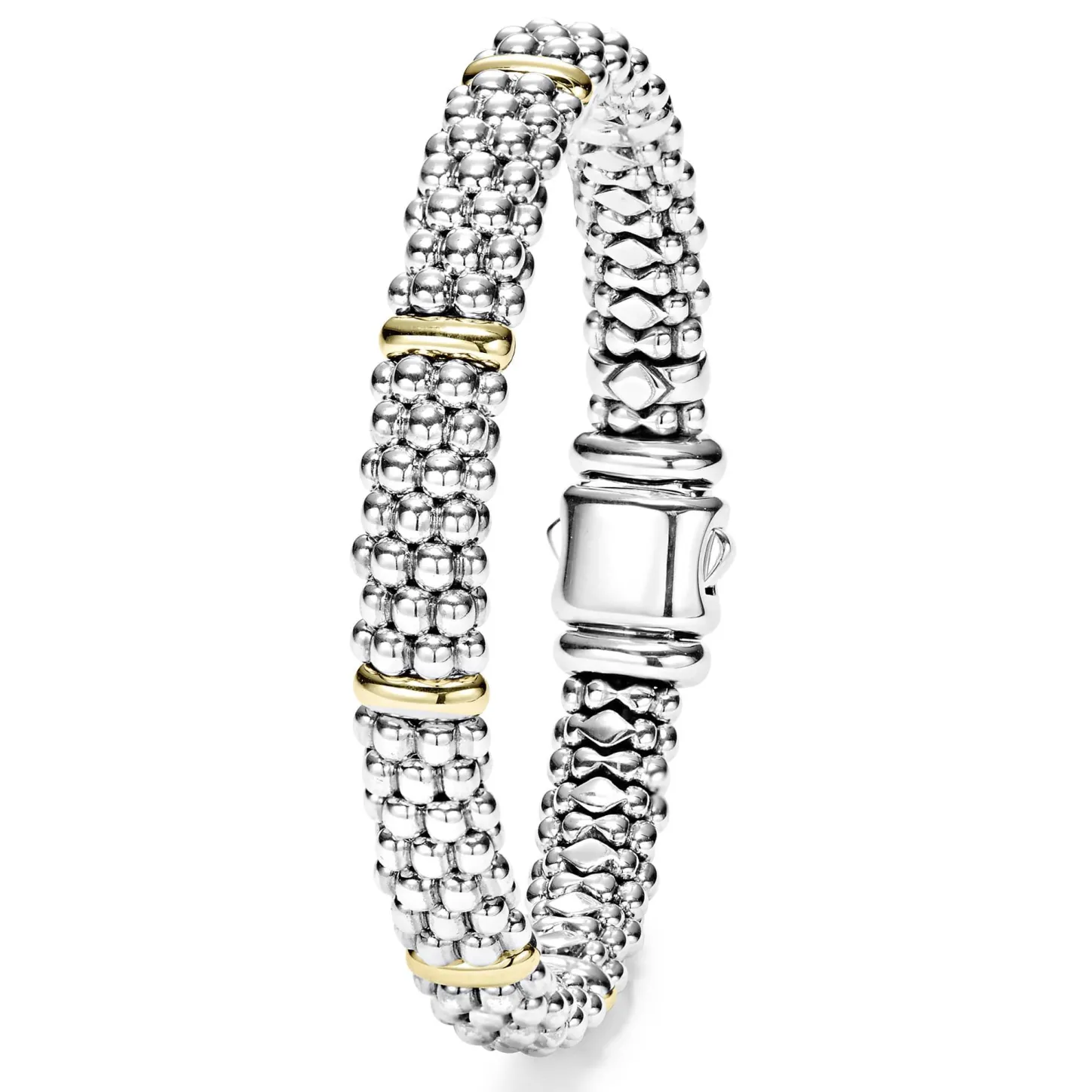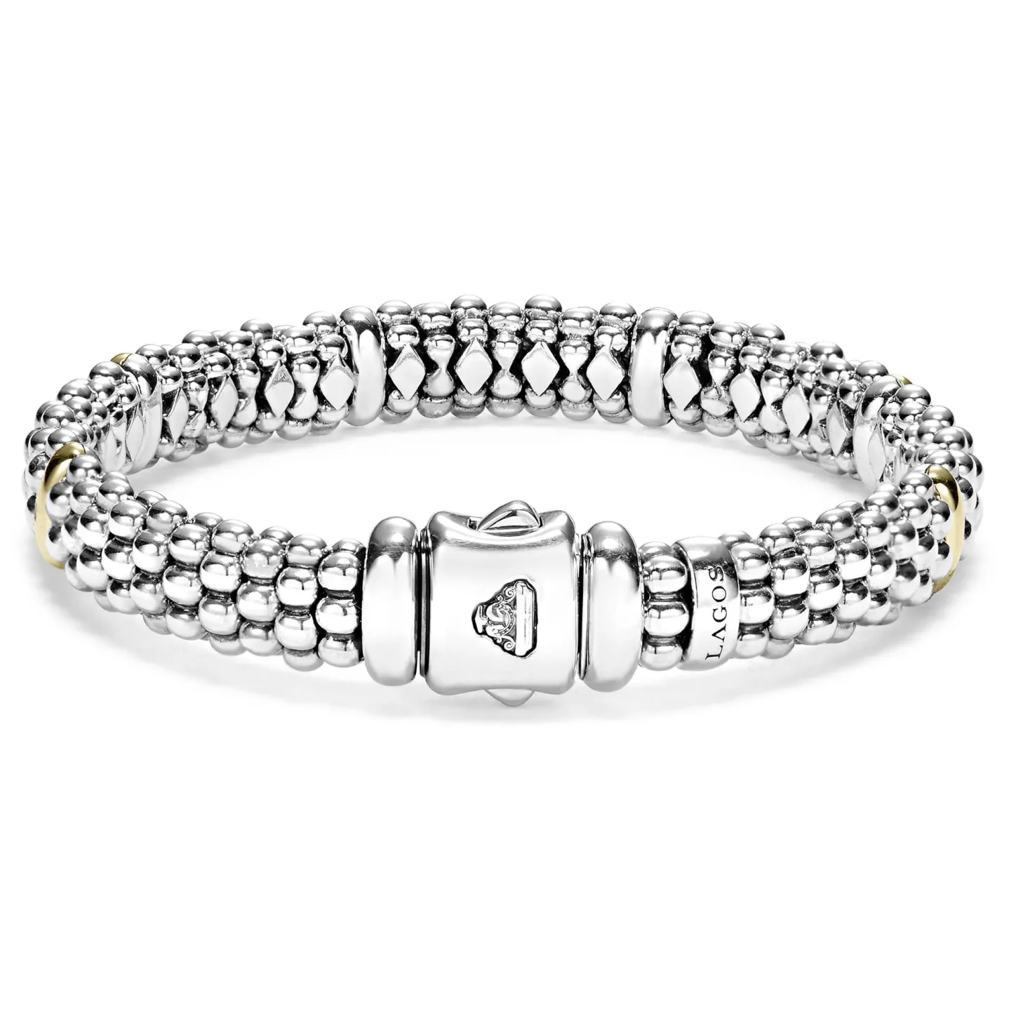 Our Classic Sterling Silver Caviar Bracelet With Six 18K Gold Stations.