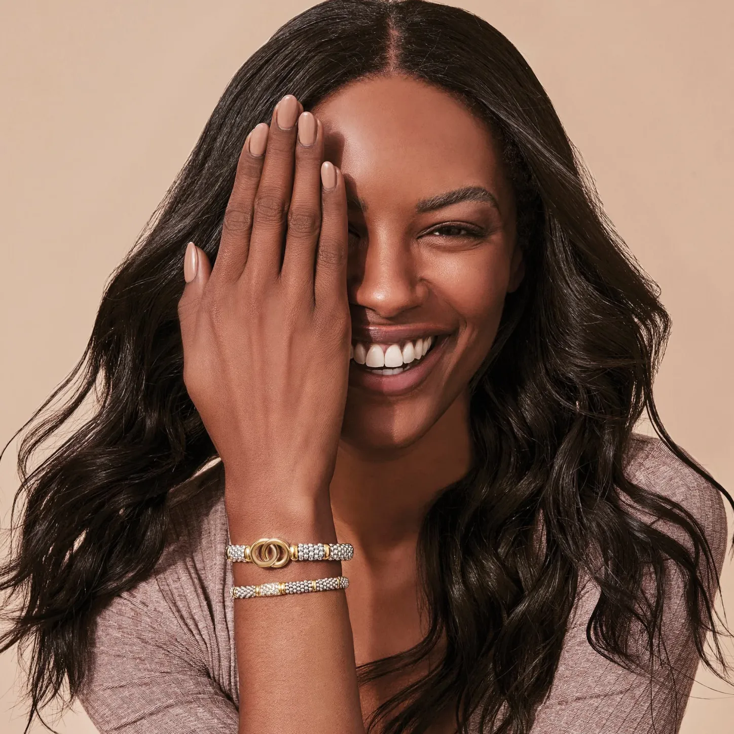 18K Gold And Sterling Silver Accents Caviar Beading To Form This Signature Interlocking Bracelet.