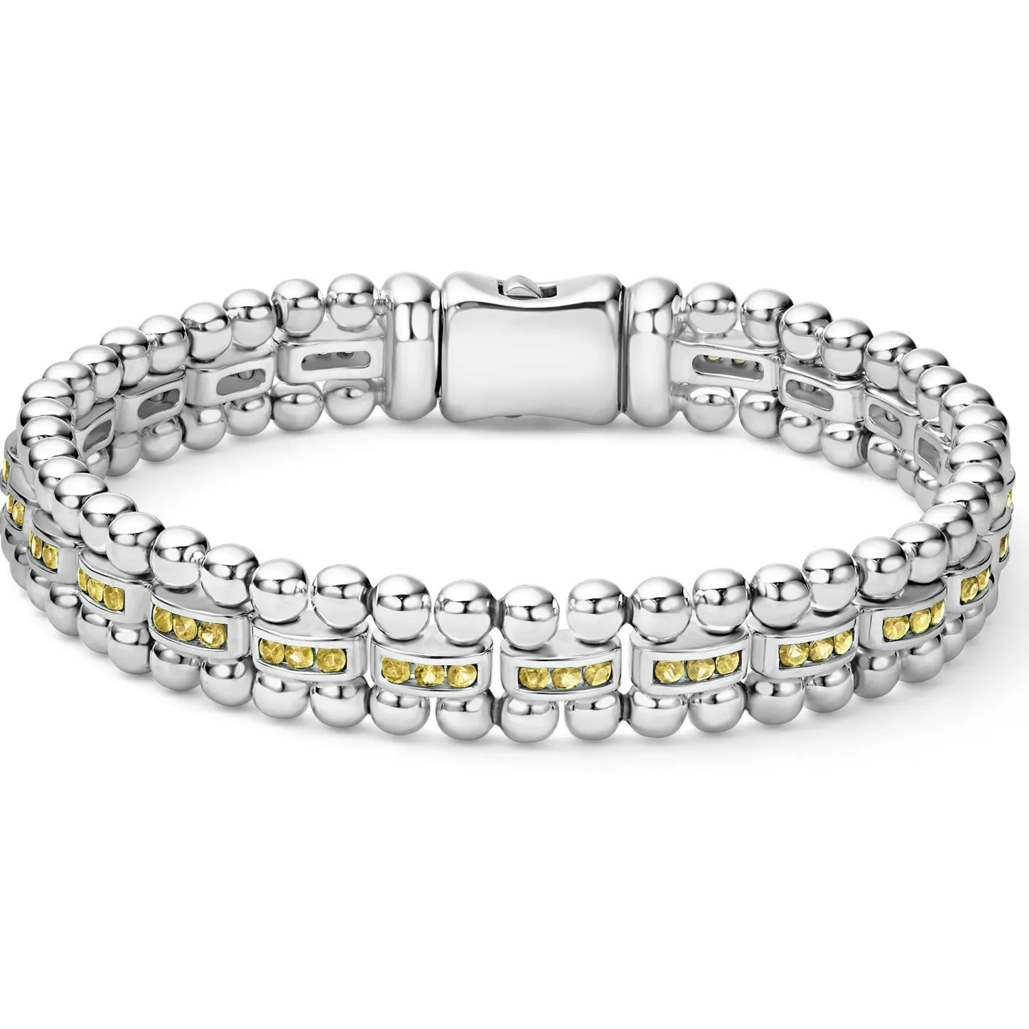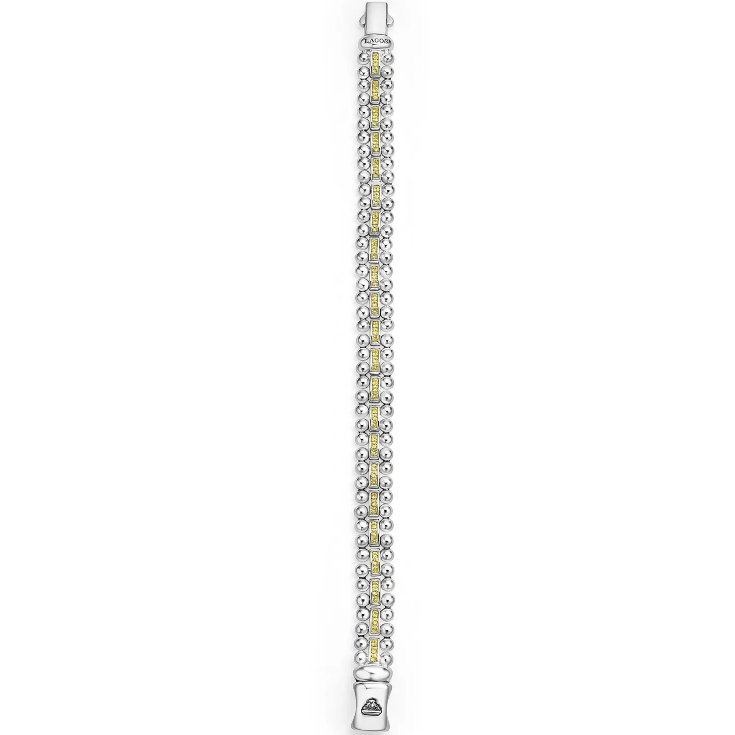 A Lagos Exclusive. Sterling Silver Caviar Link Bracelet With Precious Yellow Sapphire Sapphire Gemstone Detailing.
