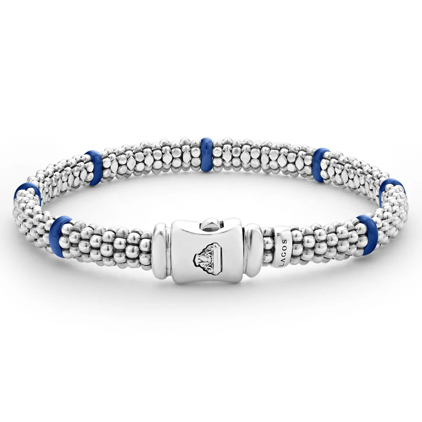Seven Smooth Ultramarine Ceramic Stations Highlight Sterling Silver Caviar Beading On This Signature Bracelet.