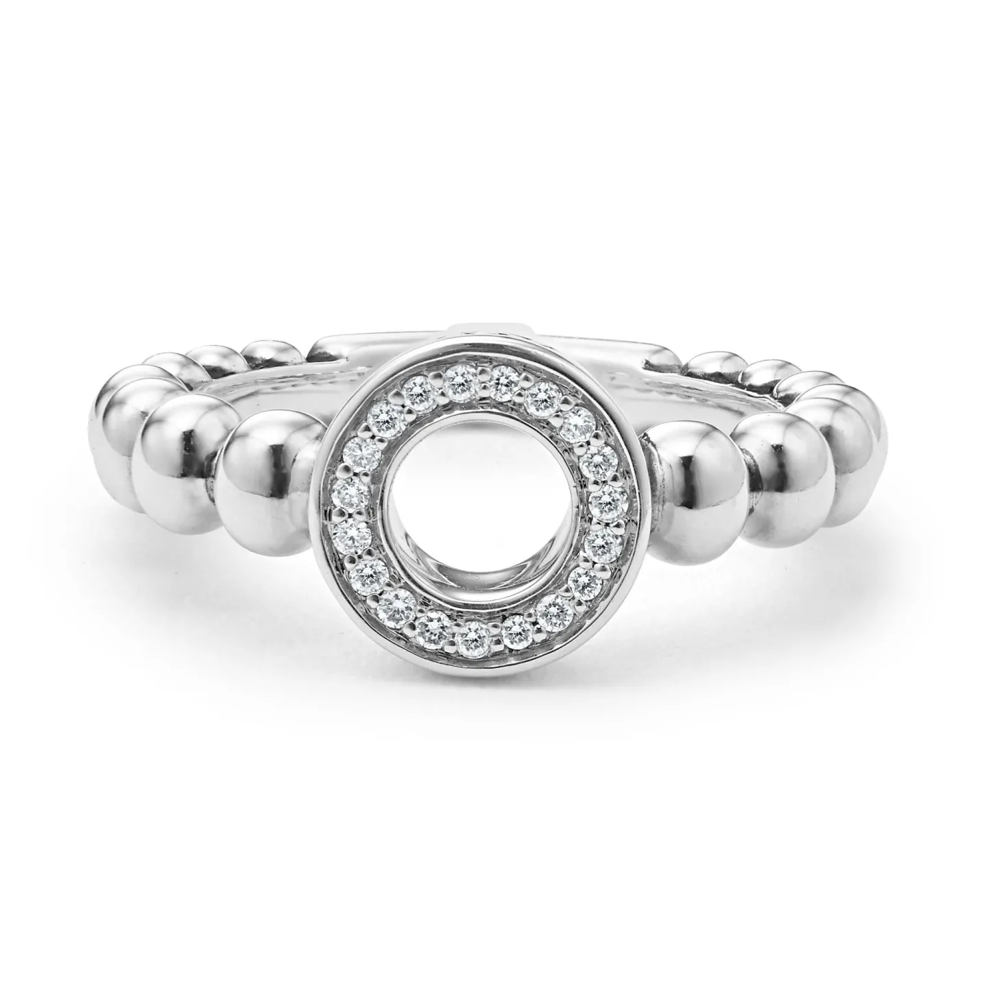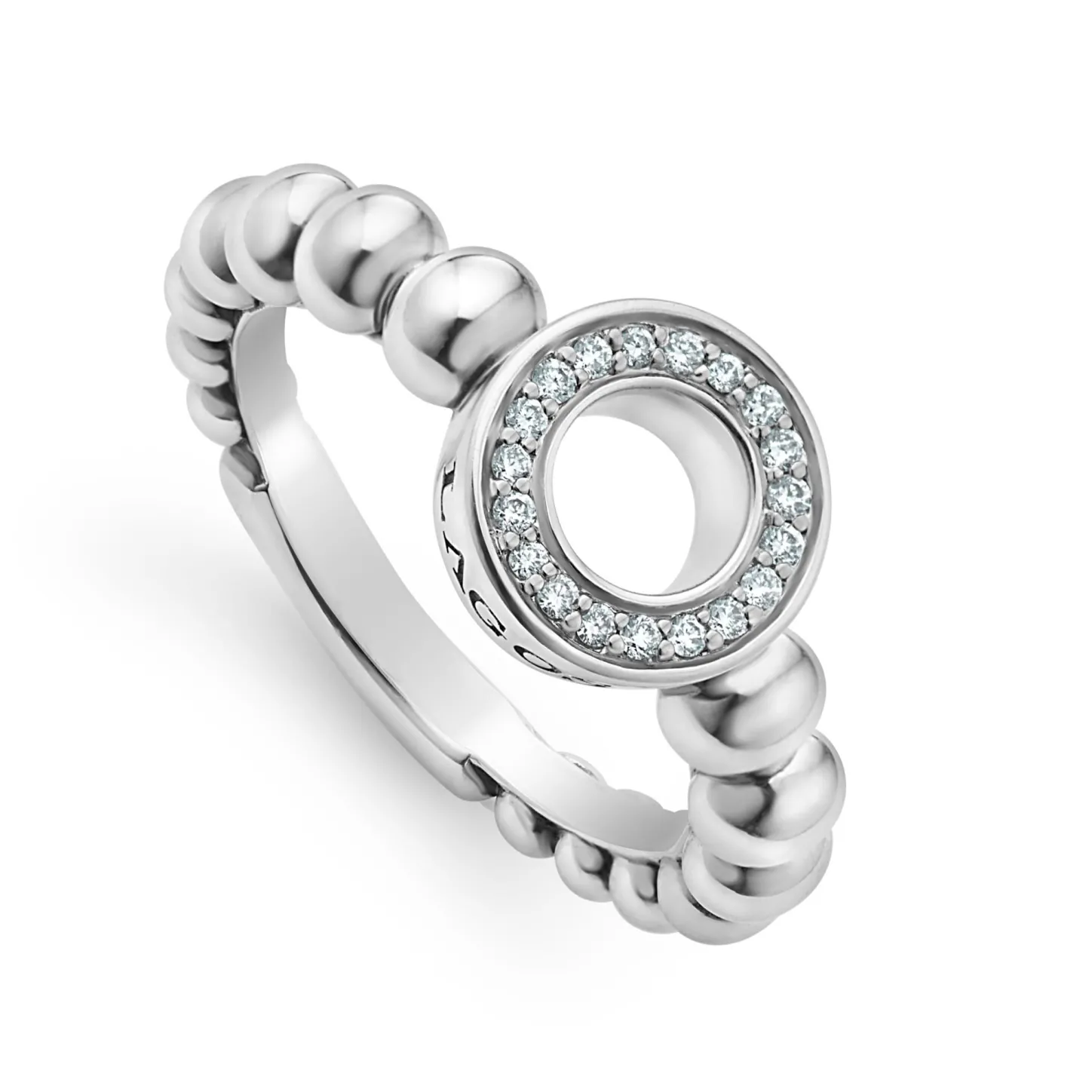 A Perfectly Formed Diamond Circle Detailing The Lagos Logo Sits On A Tapered Caviar Beaded Band. Lagos Diamonds Are The Highest Quality Natural Stones.