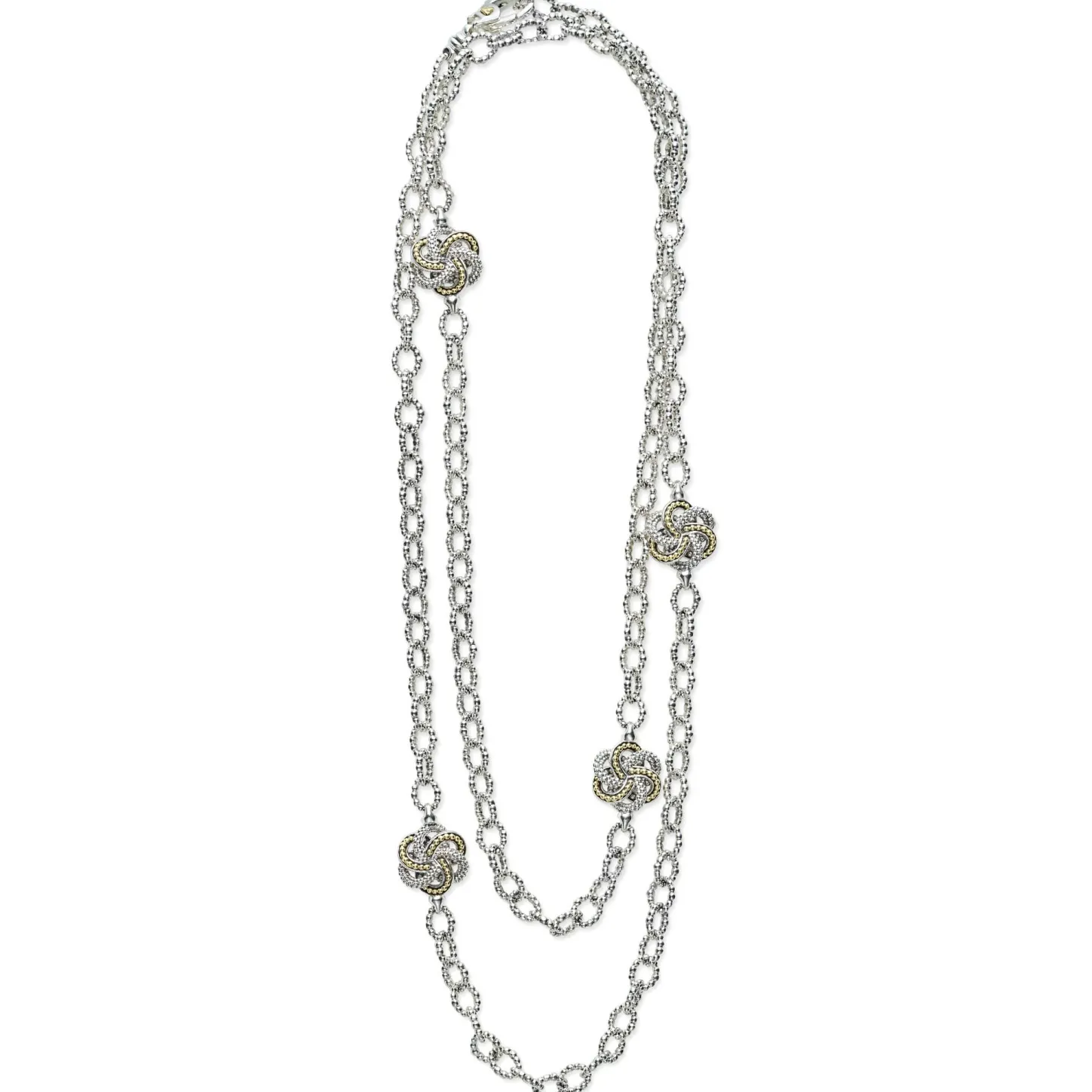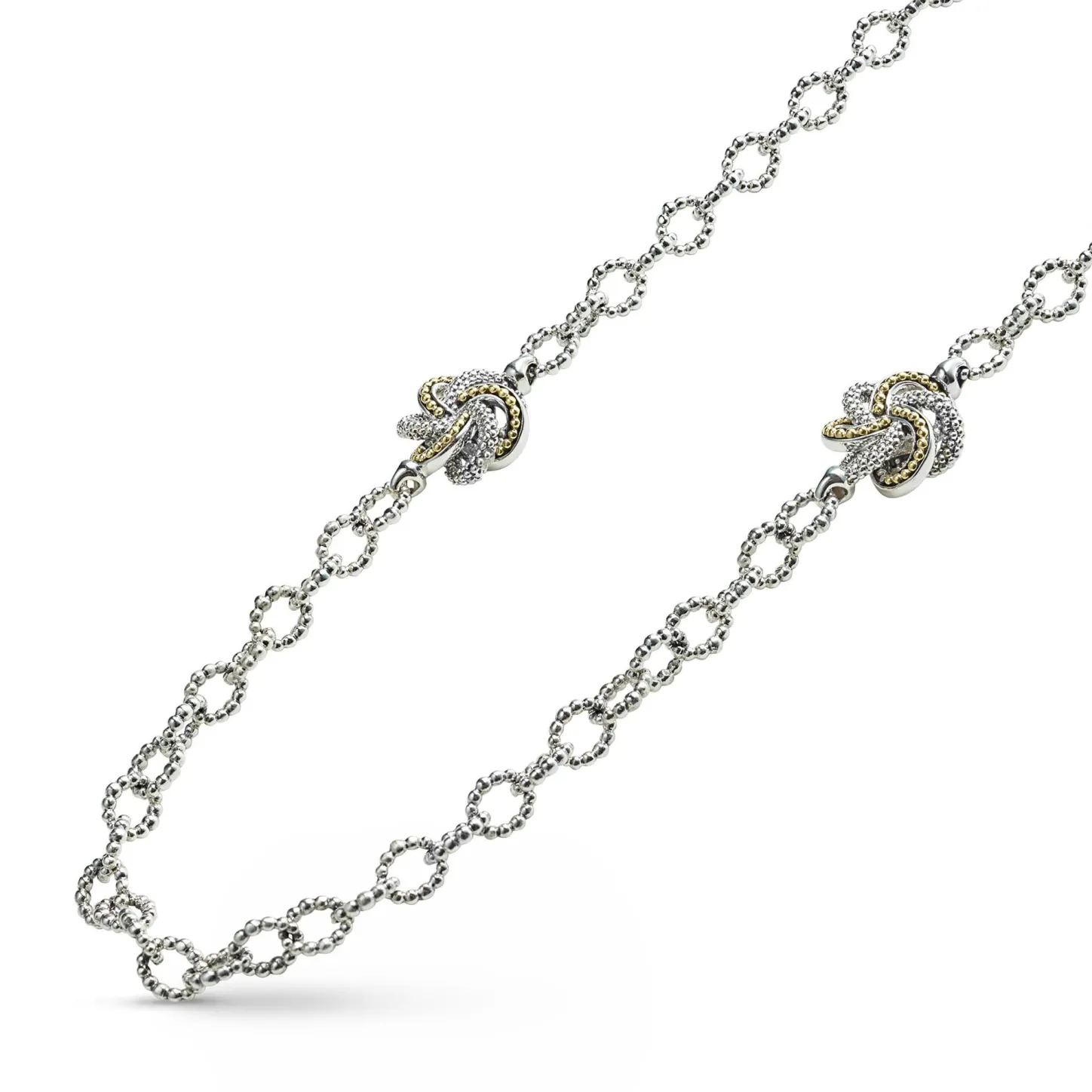 Sterling Silver Caviar Bead Links Form This Versatile Necklace With Four 18K Gold And Sterling Silver Love Knot Stations.