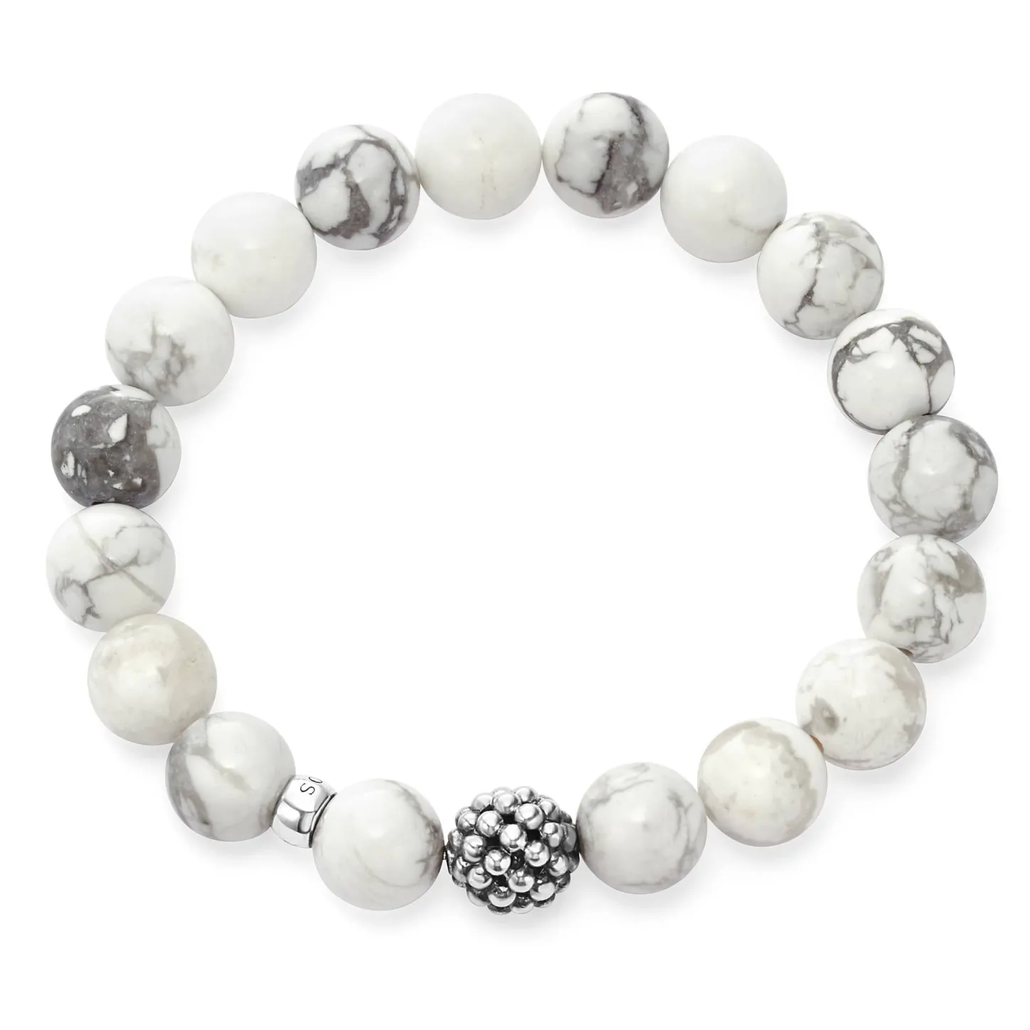 Howlite Gemstone Bracelet With A Sterling Silver Caviar Beaded Station.