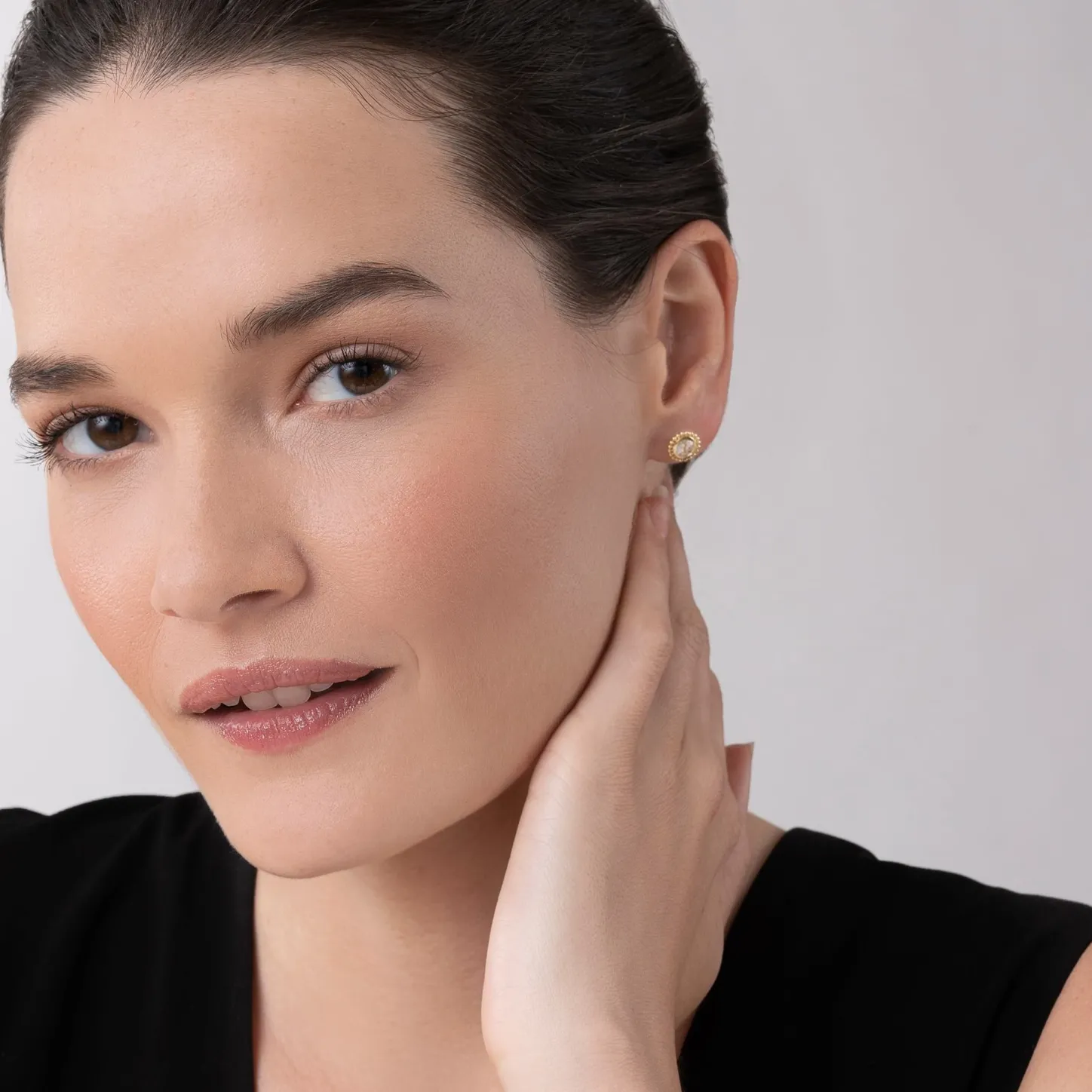 Rose Cut Diamond Stud Earrings Set And Surrounded By 18K Gold Caviar Beading. Lagos Diamonds Are The Highest Quality Natural Stones.