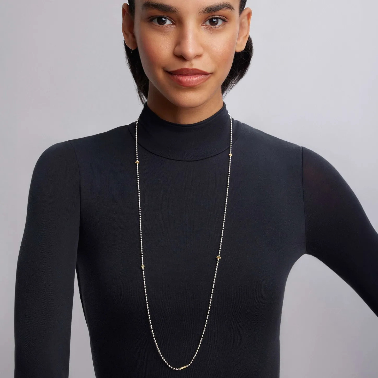 Sterling Silver Necklace With 18K Gold Caviar Beading And Fluted Accents. Ideal To Style With Various Necklaces For A Unique Look.