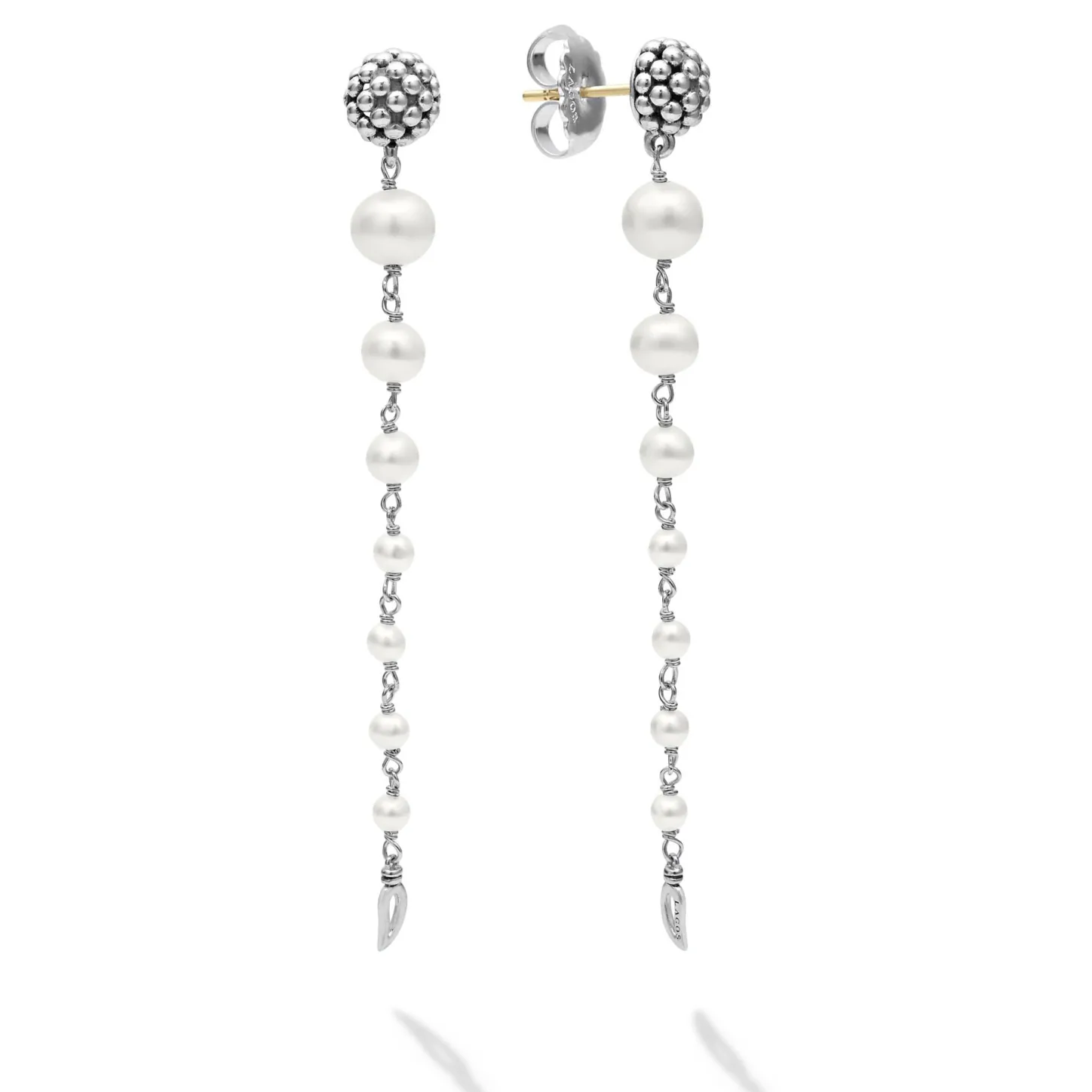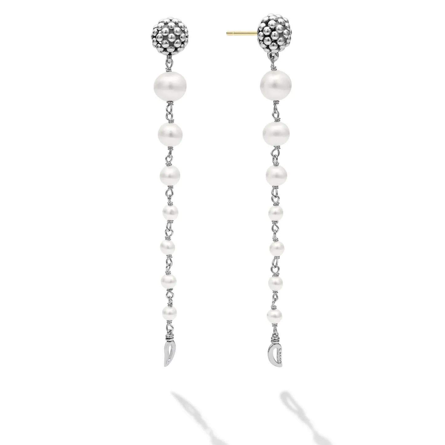 Caviar Beaded Post Earrings With Pearl Drop Detailing.
