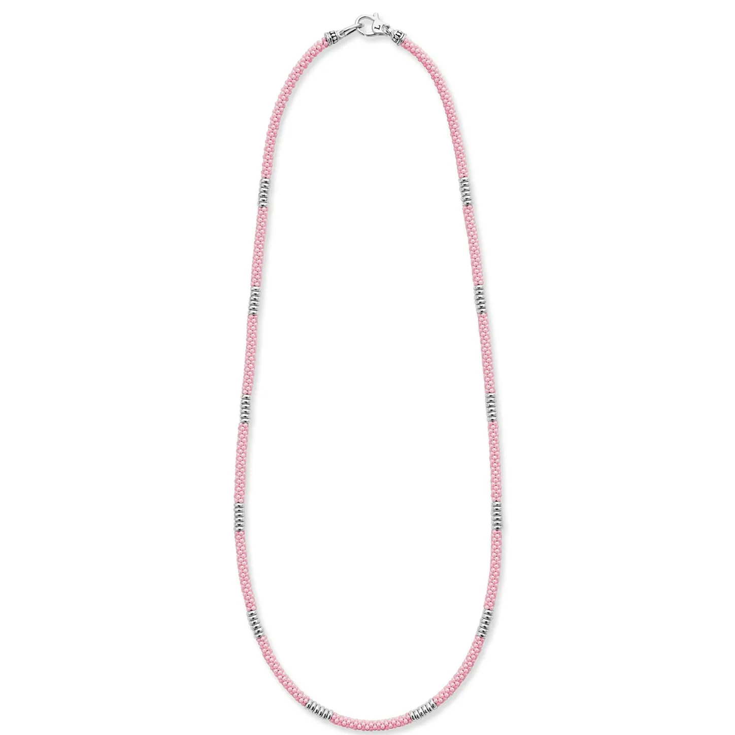 A Pink Ceramic And Sterling Silver Caviar Beaded Necklace That Is Finished With Signature Lobster Clasp.